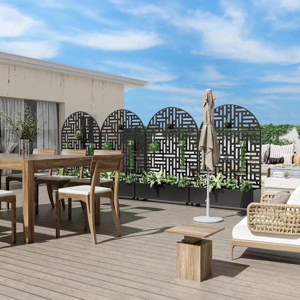 73 in. x 16 in. x 47 in. Black Metal Iron Raised Beds Planter Box with Attached Trellis for Climbing Vegetation