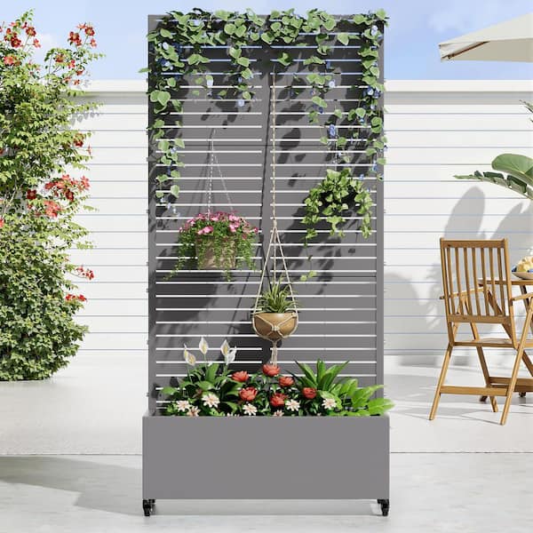 73 in. x16 in. x35 in. Black Metal Iron Raised Beds Planter Box with Attached Trellis for Climbing Vegetation