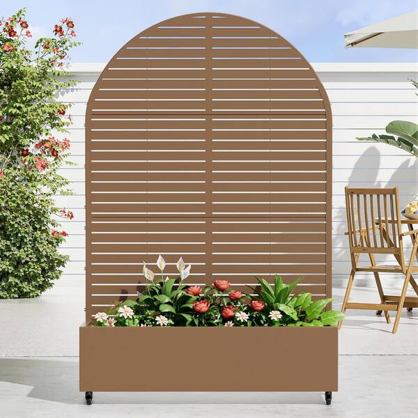 73 in. x16 in. x47 in. Brown Metal Iron Raised Beds Planter Box with Attached Trellis for Climbing Vegetation