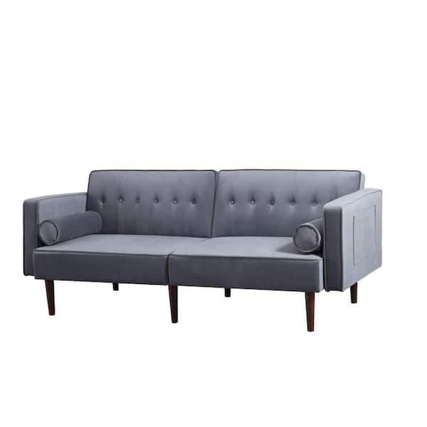 79 in. W Dark Grey Velvet Twin Sofa Bed