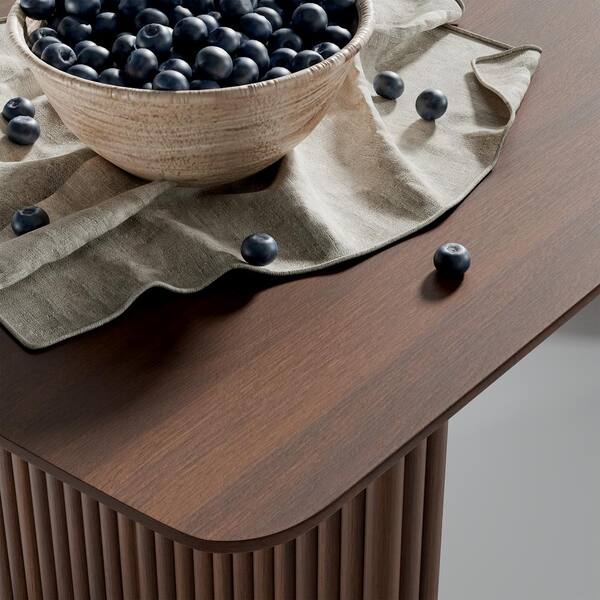 Abberton Walnut Color Oak Wood Double Pedestal Base 67 in. x 33.5 in. Rectangle Dining Table (Seats 6)