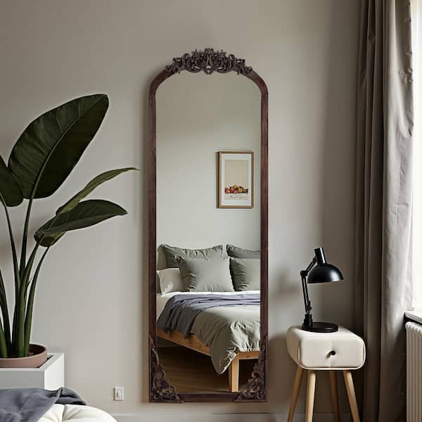 Carbonized Brown 21 in. W x 64 in. H Arched Wood Full Length Mirror Standing Mirror