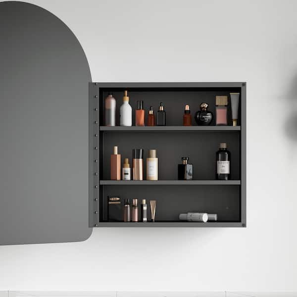 G 16 in. W x 24 in. H Recessed or Surface Mount Arched Medicine Cabinet with Mirror in Gold