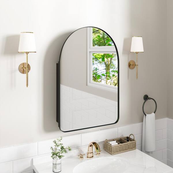 G 24 in. W x 36 in. H Recessed or Surface Mount Arched Medicine Cabinet with Mirror in Black
