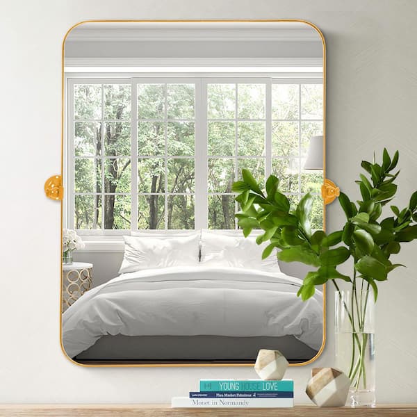 Gold Bathroom Mirrors-24 in. W x 36 in. H Round Corner Rectangle Iron Framed
