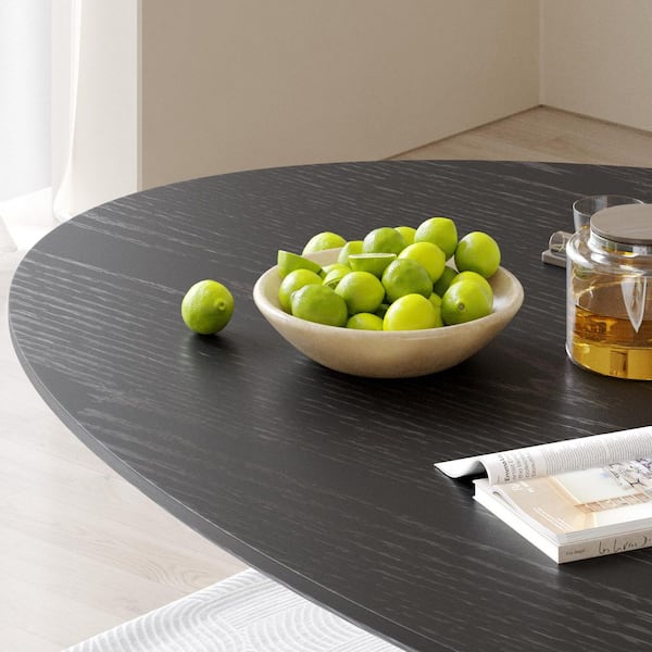 Oval Black Wooden Solid Wood 67 in. Wood Column Pedestal Base Dining Table Seats 6
