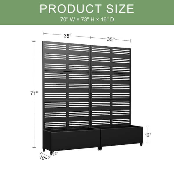 Set of 2-73 in. x 16 in. x 35 in. Black Metal Iron Planter Box with Attached Trellis for Climbing Vegetation