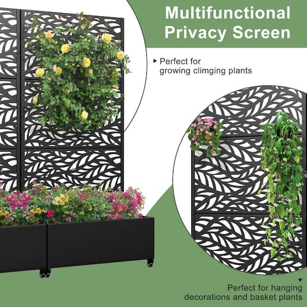 Set of 2-73 in. x 16 in. x 35 in. Black Metal Iron Planter Box with Attached Trellis for Climbing Vegetation