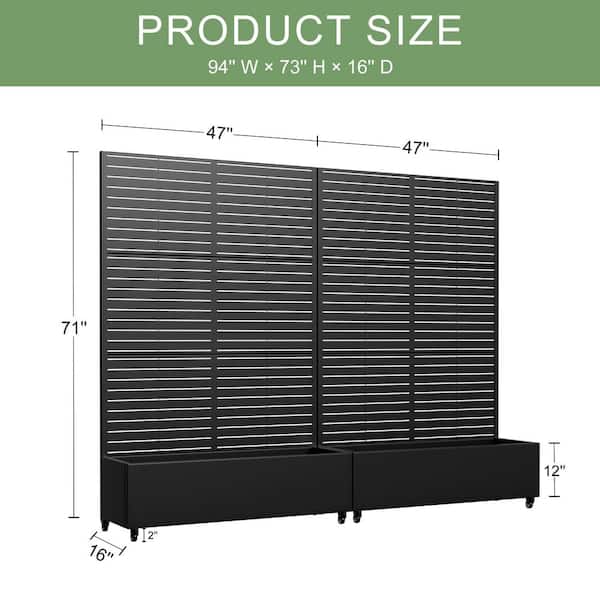 Set of 2-73 in. x 16 in. x 47 in. Black Metal Iron Planter Box with Attached Trellis for Climbing Vegetation