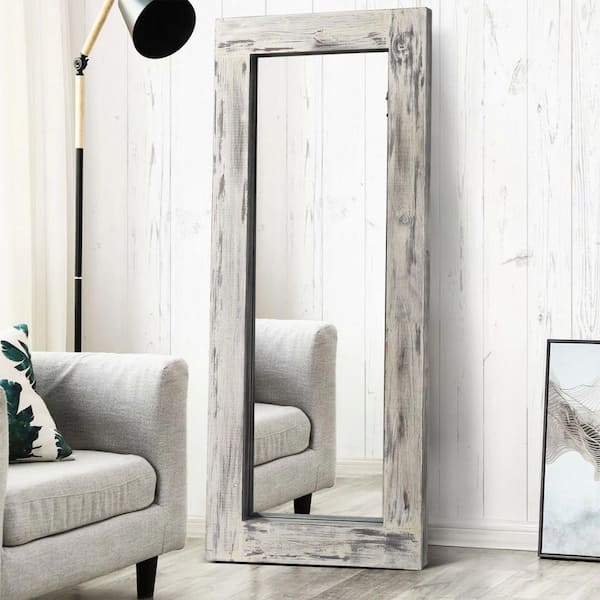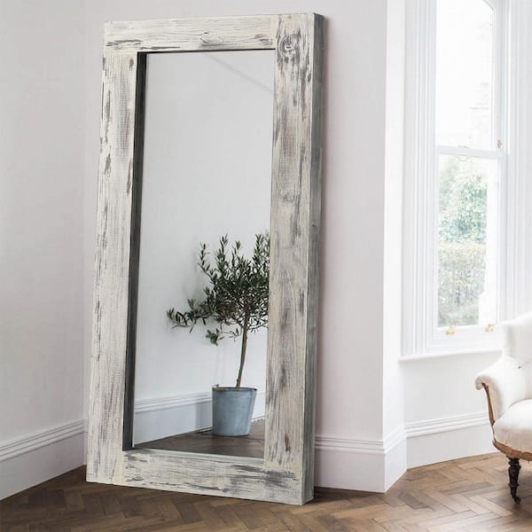 Weathered White 32 in. W x 71 in. H Rectangle Wood Full Length Mirror Standing Mirror