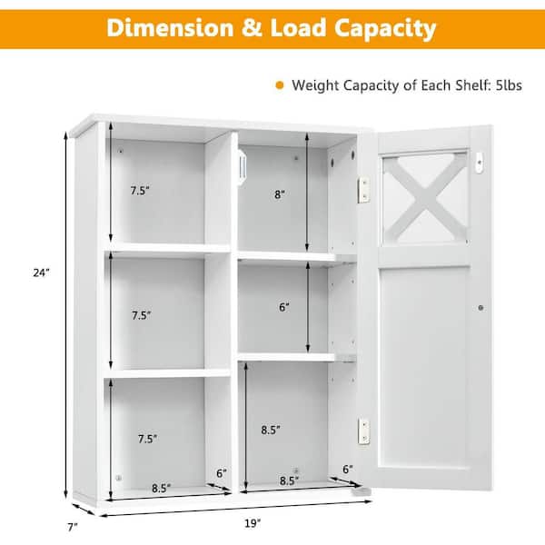 19 in. W x 7 in. D x 24 in. H White Bathroom Wall Cabinet Multipurpose Storage Organizer Single Door