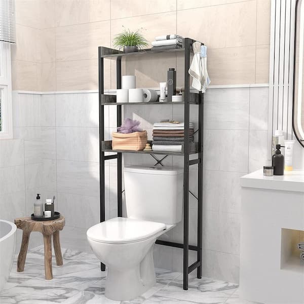24.8 in. W x 63.7 in. H x 9.4 in. D Gray Bathroom Over-the-Toilet Storage