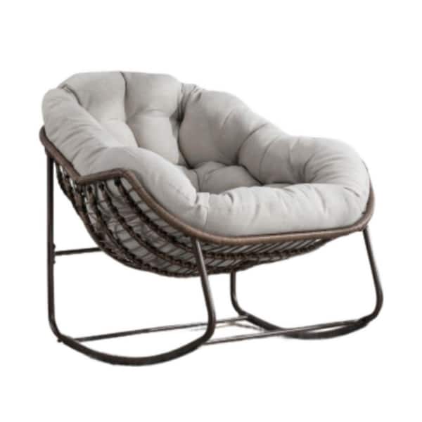 Series Frame Bronw Rattan Metal Rocking Outdoor Rocking Chair with CushionGuard Beige Cushion 1Piece