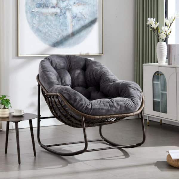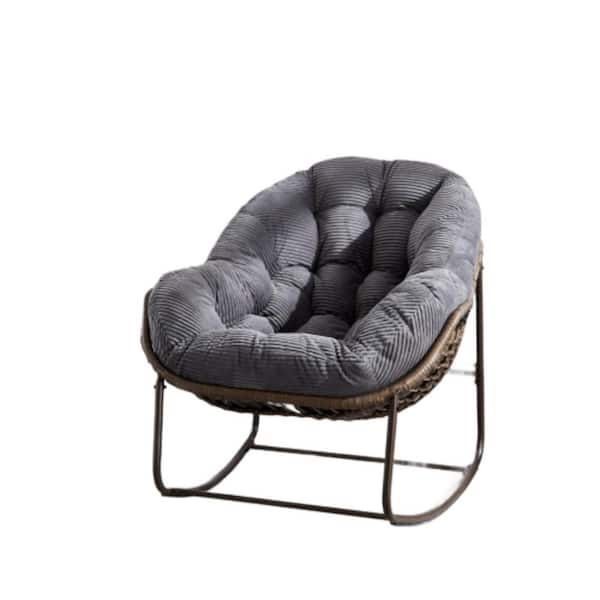 Series Frame Bronw Rattan Metal Rocking Outdoor Rocking Chair with CushionGuard Gray Cushion 1Piece