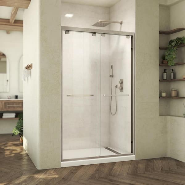 Abbey 44 in. to 48 in. W x 76 in. H Frameless Sliding Bypass Shower Door in Brushed Nickel