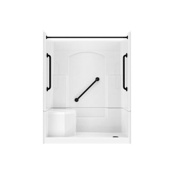 Accessible Living Alliance Plus 60 in. L x 32 in. W x 77.5 in. H Alcove RH Drain Curtain Rod Shower Kit in Matte Black