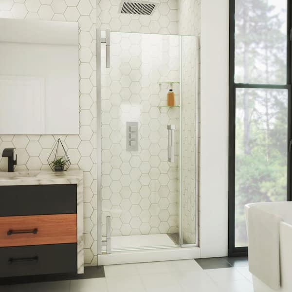 Ascend 35 in. W x 72 in. H Pivot Frameless Shower Door in Brushed Nickel