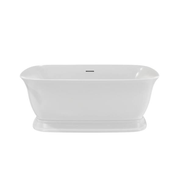 Ascend 59 in. x 31.5 in. Acrylic Freestanding Soaking Bathtub in White with Center Drain in Polished Brass