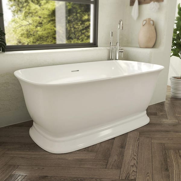 Ascend 67 in. x 31.5 in. Acrylic Freestanding Soaking Bathtub in White with Center Drain in Brushed Nickel