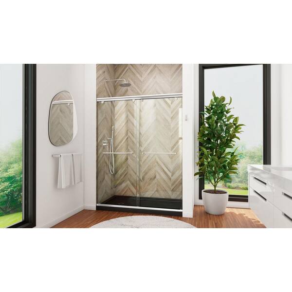 Charisma 34 in. x 60 in. x 78.75 in. Semi-Frameless Sliding Shower Door in Chrome with Shower Base Left Drain