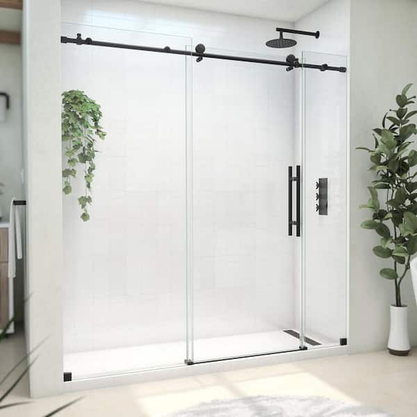 Continuum 68-72 in. W x 76 in. H Fully Clear Sliding Frameless Shower Door in Matte Black