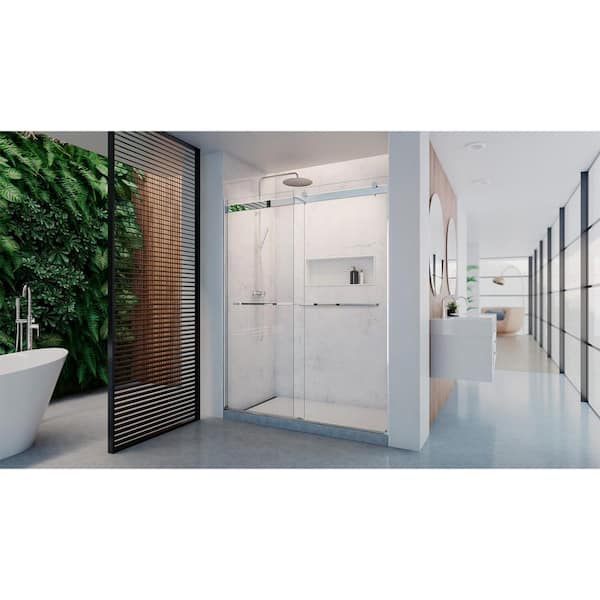 Dexterity 60 in. W x 76 in. H Semi-Frameless Sliding Bypass Shower Door in Chrome with Clear Glass