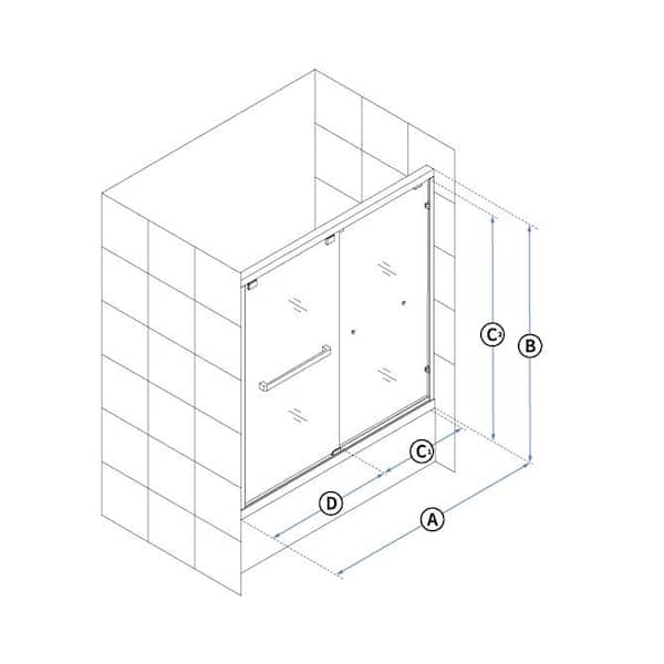 Encore 60 in. W x 58 in. H Semi-Frameless Bypass Sliding Tub Door in Brushed Nickel with Frosted Glass