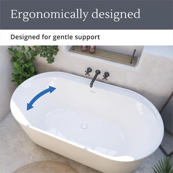 • Freestanding bathtub made of white acrylic will not fade or dull