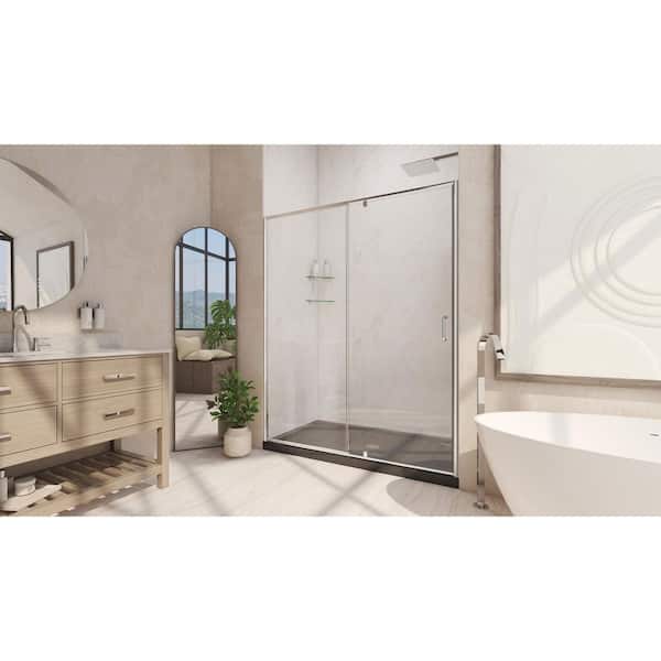 Flex 32 in D x 42 in. W x 74.75 in. H Framed Pivot Shower Door in Chrome with Center Drain Black Acrylic Base Kit
