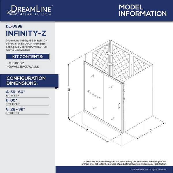 Infinity-Z 56 to 60 in. x 60 in. Semi-Frameless Sliding Tub Door in Chrome and Backwall