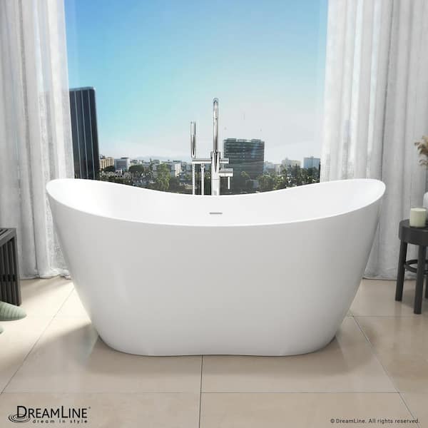 Nile 59 in. x 28 in. Acrylic Flatbottom White Bathtub with Chrome Drain