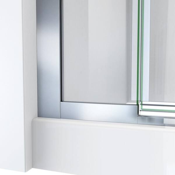 Terrace 58 in. W x 72 in. H Pivot Semi Frameless Shower Door in Chrome with Clear Glass