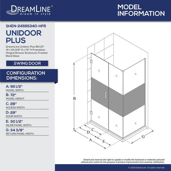 Unidoor Plus 34-3/8 in. x 59-1/2 in. x 72 in. Frameless Hinged Corner Shower Enclosure in Oil Rubbed Bronze