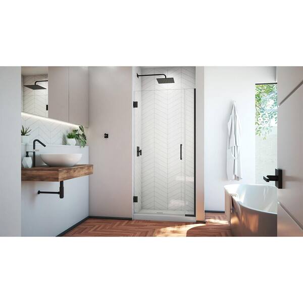 Unidoor Plus 35 to 35.5 in. x 72 in. Frameless Hinged Shower Door in Matte Black