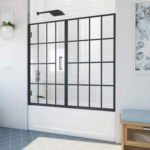 Unidoor Toulon 58 in. W x 58 in. H Hinged Frameless Tub Door with Matte Black Finish