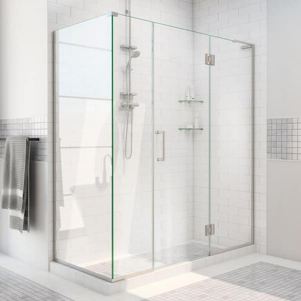 Unidoor-X 64.5 in. W x 30-3/8 in. D x 72 in. H Frameless Hinged Shower Enclosure in Brushed Nickel