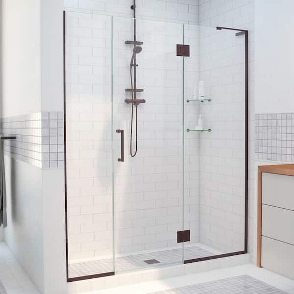 Unidoor-X 64 to 64.5 in. x 72 in. Frameless Hinged Shower Door in Oil Rubbed Bronze