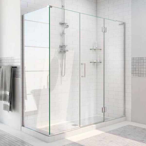 Unidoor-X 69.5 in. W x 34-3/8 in. D x 72 in. H Frameless Hinged Shower Enclosure in Chrome