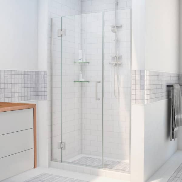 Unidoor-X 72 to 72.5 in. x 72 in. Frameless Hinged Shower Door in Brushed Nickel