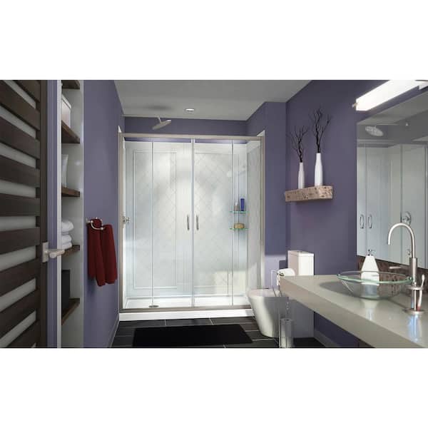 Visions 60 in. W x 30 in. D x 76-3/4 in. H Semi-Frameless Shower Door in Brushed Nickel with White Base and Backwalls