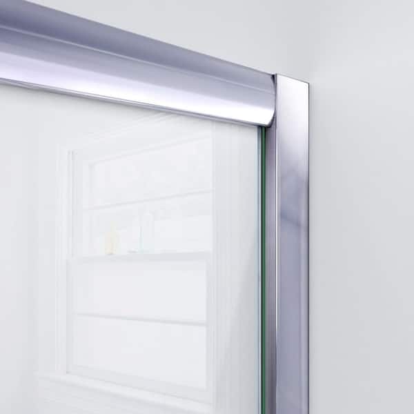Visions 60 in. W x 32 in. D x 74-3/4 in. H Semi-Frameless Shower Door in Chrome with White Base Left Drain