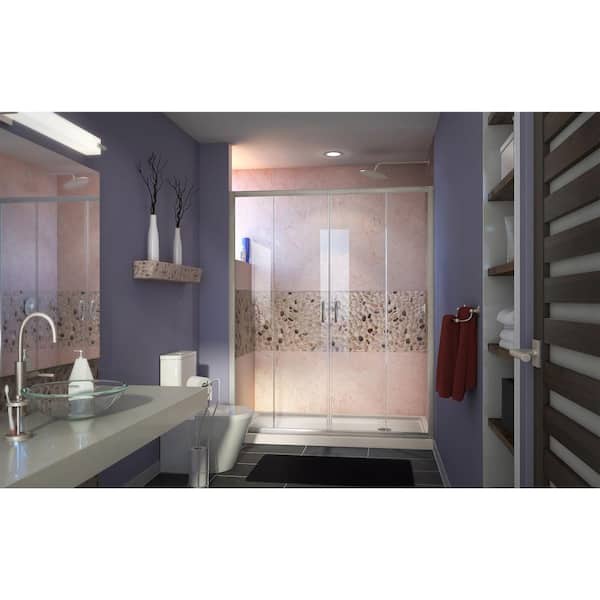 Visions 60 in. W x 36 in. D x 74-3/4 in. H Semi-Frameless Shower Door in Brushed Nickel with Biscuit Base Right Drain