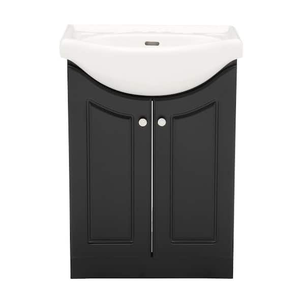 24 in. W Standard Vanity in Satin Black Color with Ceramic Vanity Top in White with White Basin