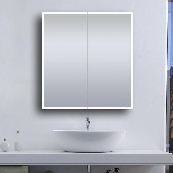 30 in. W x 32 in. H Rectangular Aluminum LED Medicine Cabinet with Mirror and Magnifying Glass