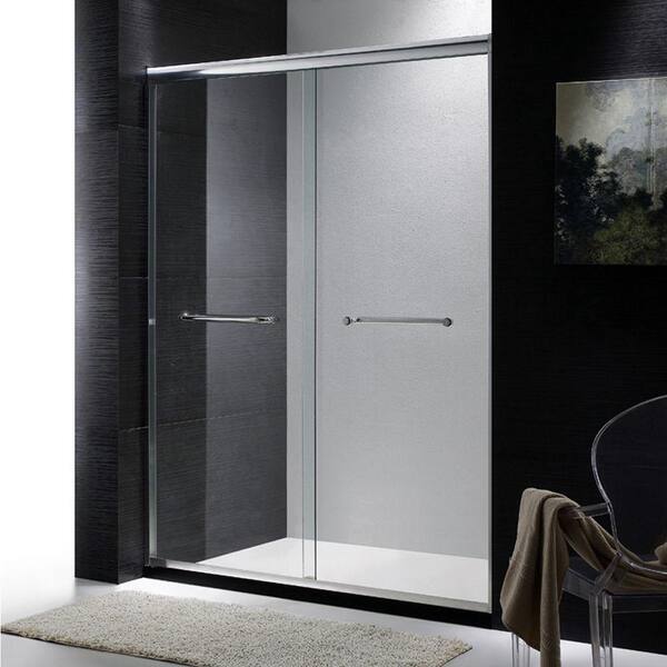 60 in. W x 72 in. H Sliding Frameless Shower Door in Chrome with Handle