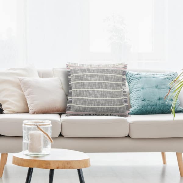 Drew Gray / Pink Striped Fringed 20 in. x 20 in. Indoor Throw Pillow Set of 2