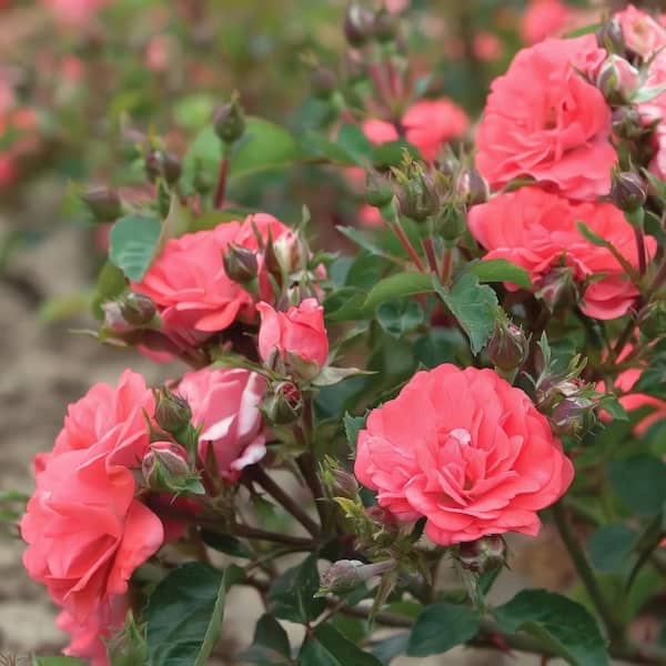 3 Gal. Coral Drift Rose Bush with Coral-Orange Flowers