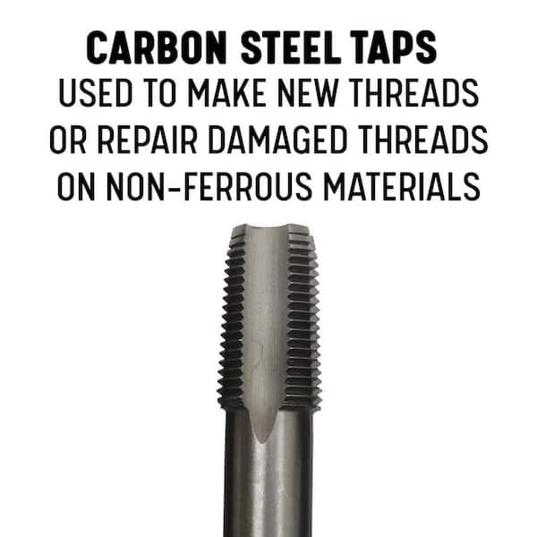 • Carbon steel NPT pipe tap and matching drill bit in plastic case