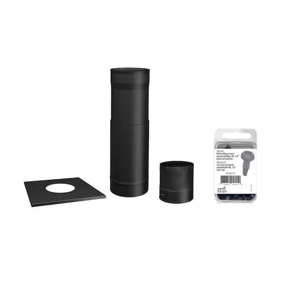 6 in. x 6 in. Black Single Wall Pipe Kit Installation To The Ceiling Chimney Pipe