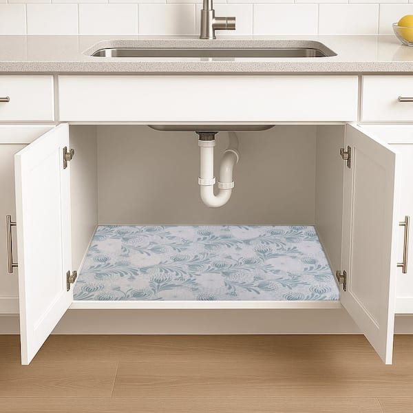 Premium Floral 24 in. D x 59 in. L Solid Slip Resistant, Waterproof Under Sink Mat Drawer and Shelf Liner (1- Pack)